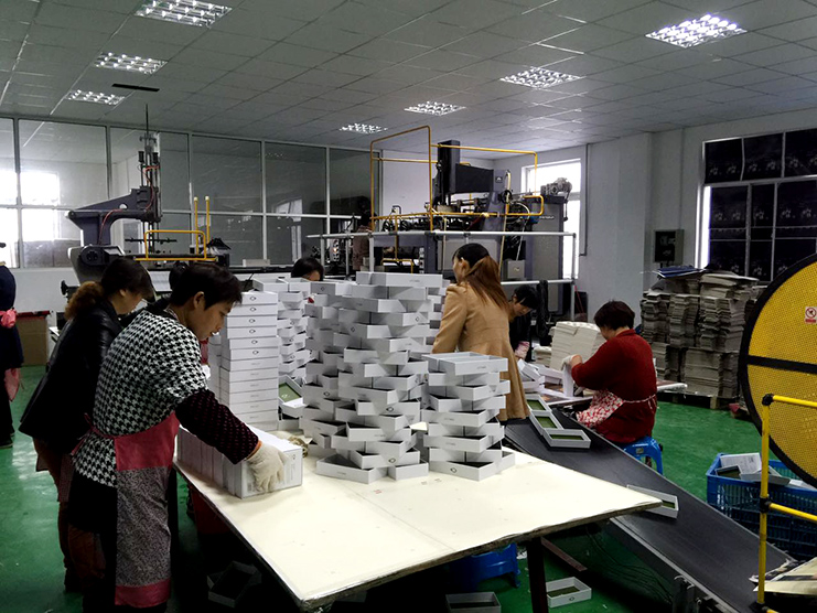 車間工人在規(guī)整剛從生產(chǎn)線上下來的禮盒